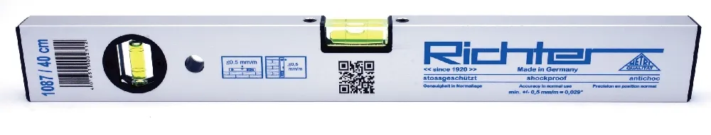 Genauigkeit: mind. 0,5 mm/m = 0,029O (in Normallage)